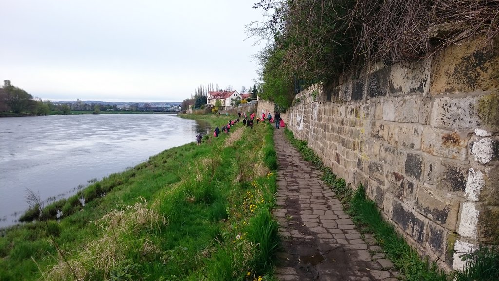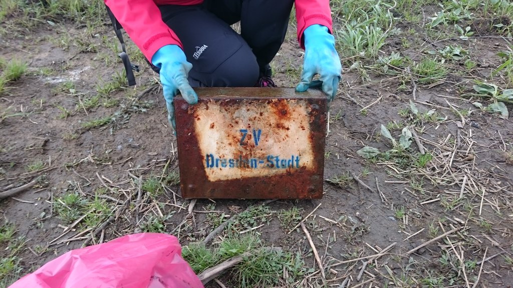 Eigentlich wollten wir im Team Cachen gehen. Doch dann besannen wir uns – denn man kann ja nicht nur von der Natur nehmen sondern sollte auch geben. Ausgerüstet mit Handschuhe, roten Müllsäcken und guter Morgenlaune ging es zur Elbwiesenreinigung.