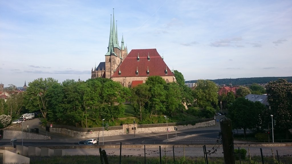 Der Tag begann mit dem Publish der Labcaches zum Event. Sie führten zu 10 Sehenswürdigkeiten im Messegelände und in der Stadt und brachten uns ganz nebenbei noch den ein oder anderen Punkt für unseren „I love Erfurt“ (GC6F9Z5)-Whereigo.
