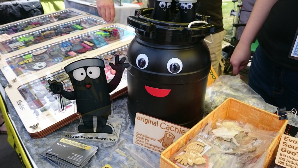 Dann ging es zielgerichte zu den vielen Verkaufständen. Vom Petling über den „Cachie“ bis zum Geocoinsammlerset gab es hier ALLES was das Cacherherz. Natürlich wurde der ein oder andere Euro investiert. Eventcoin, Lockpickingset (das brauchen wir morgen), Übungsschloss und einiges mehr wechselten den Besitzer. Unnötig zu erwähnen, dass wir so manches bekanntes Gesicht aus der Cacherszene von Dresden und Umgebung hier getroffen haben.